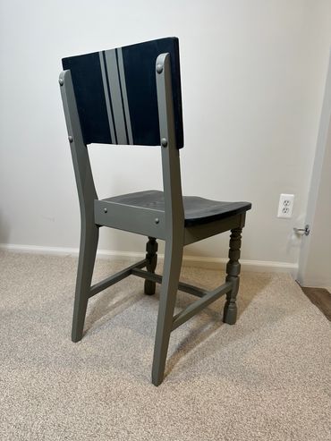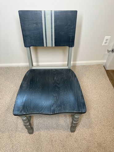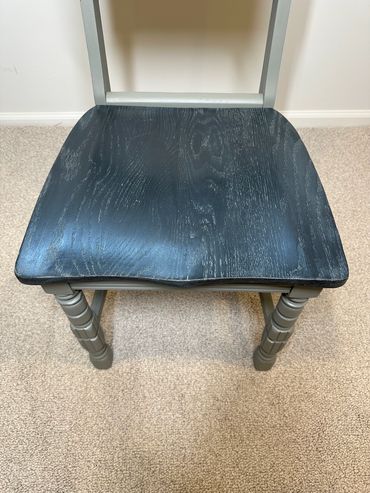 Updated vintage chair with detailed legs and cerused seat and back. Seat and back are dark, legs are a greige color. Would make a great desk chair; it’s very comfortable.